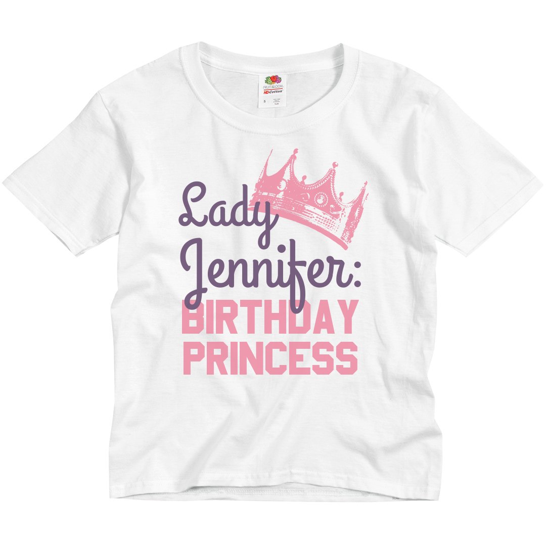 I think the idea to call any birthday girl at a princess-themed party "Lady" is a great one. It really sets the tone and shows your commitment to the theme. Especially when this commitment is on full display in a totally awesome custom birthday shirt such as this one.