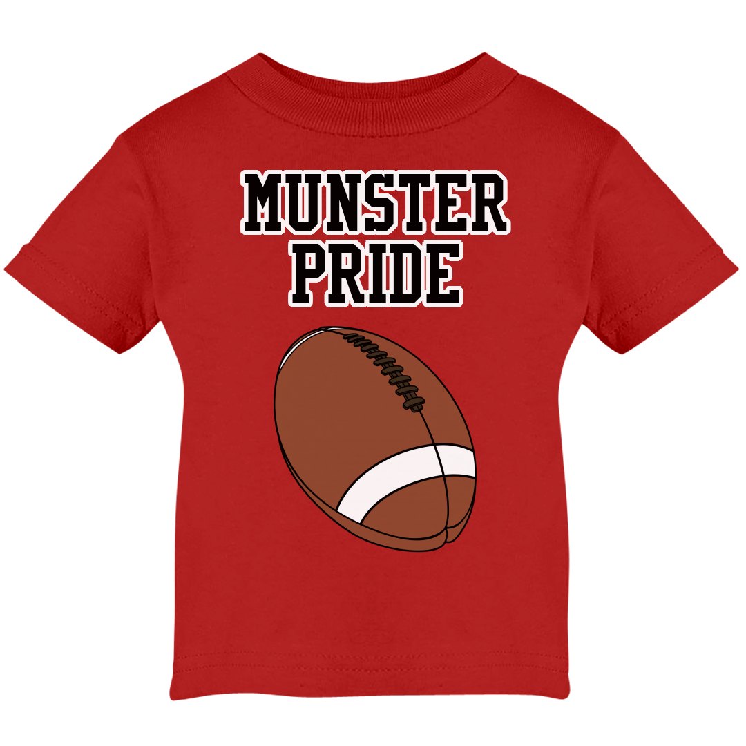 Red infant tee with Munster Pride on front & football graphic