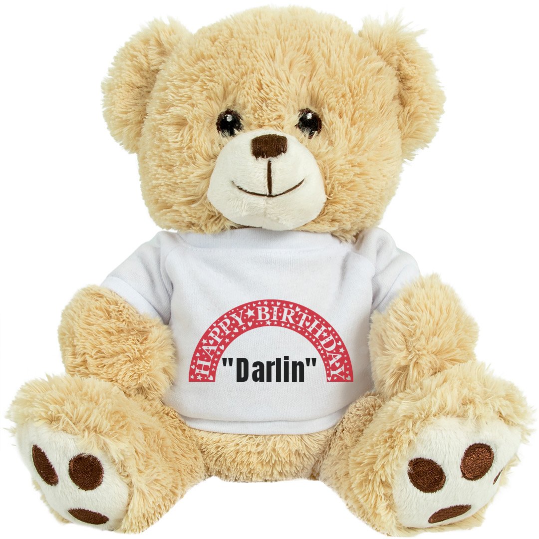 BEST SELLER! I mean, who could say "No" to that face? This cute and customizable medium Teddy Bear sits at an average of 10 inches tall and has soft, embroidered eyes and nose and is great for giving little bear hugs. Perfect for customizing and sending to military loves, kids at camp, and others away from home.