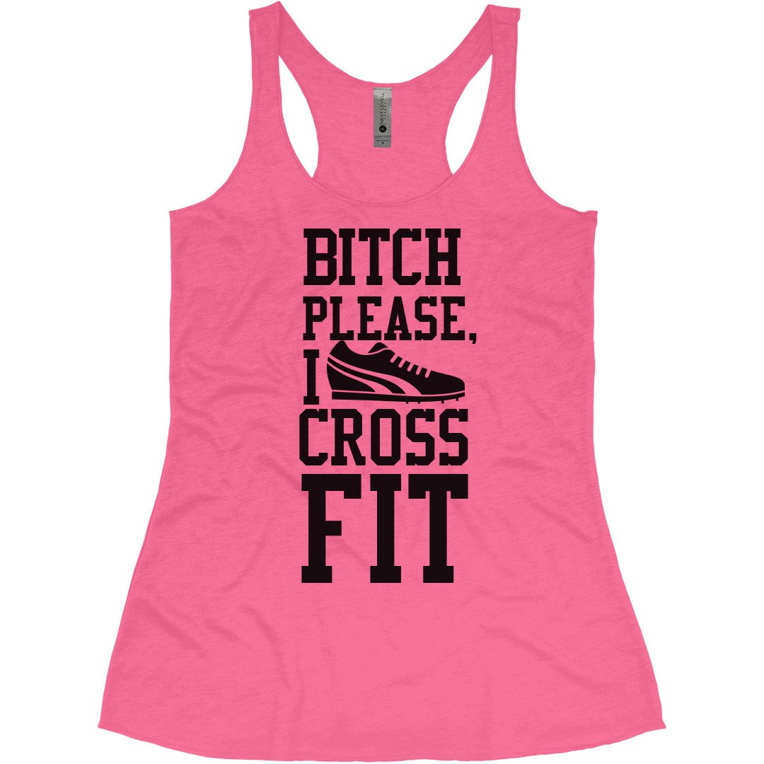 Bitch please. I cross fit. Snap up a trendy and funny workout design that shows how serious you are about working out. This awesome racerback tank is going to have you looking good while you're running.