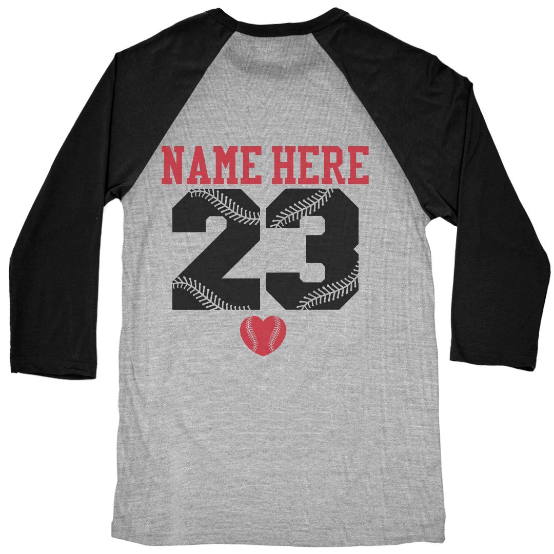 Personalize a trendy Bella-Canvas triblend baseball girlfriend jersey you can wear to all your boyfriend's games this baseball season. Change the art numbers and name to match his.