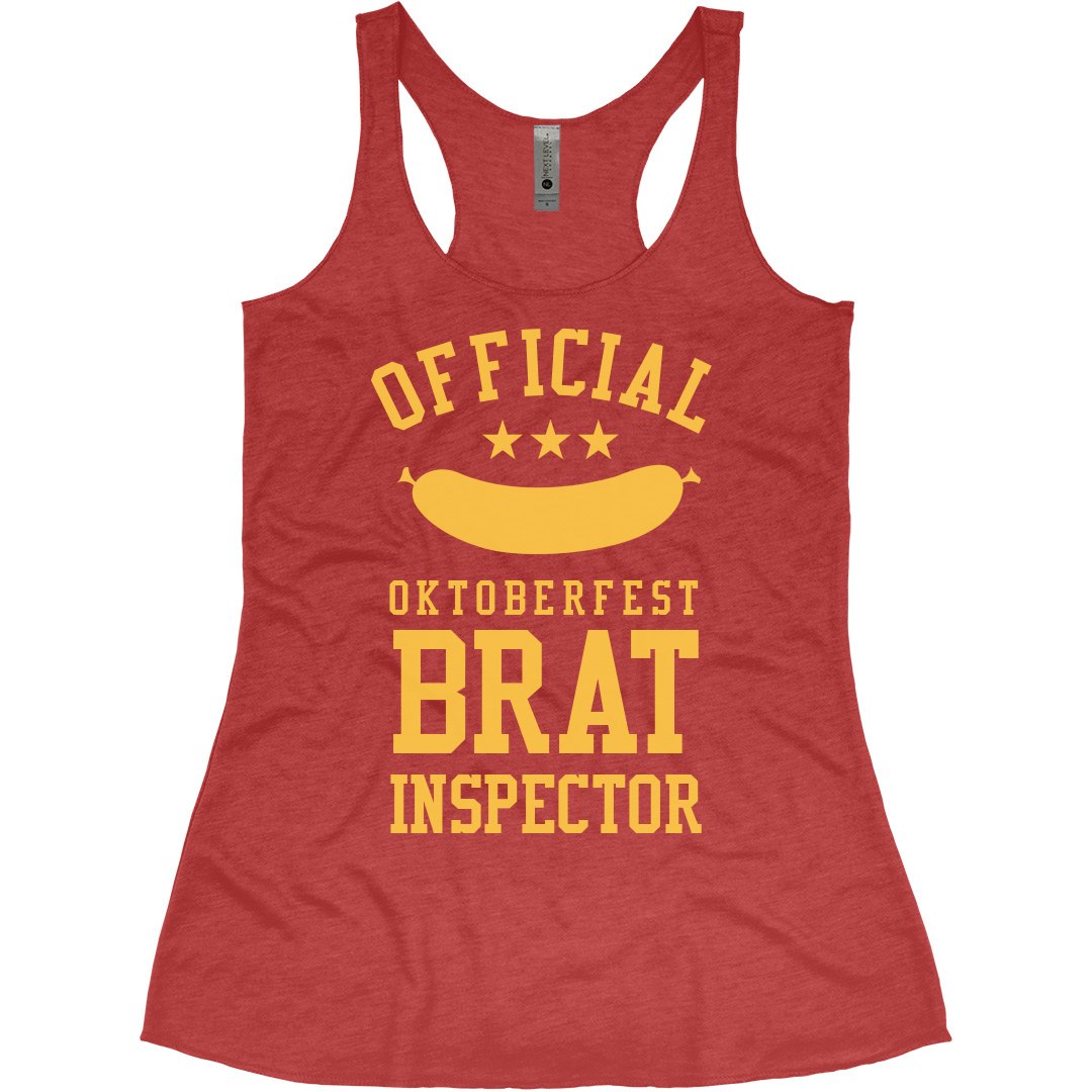Are you ready for Oktoberfest? Get a cute and funny tank top to wear while you get drunk and drink beer! Official Oktoberfest brat inspector! Now you're ready.