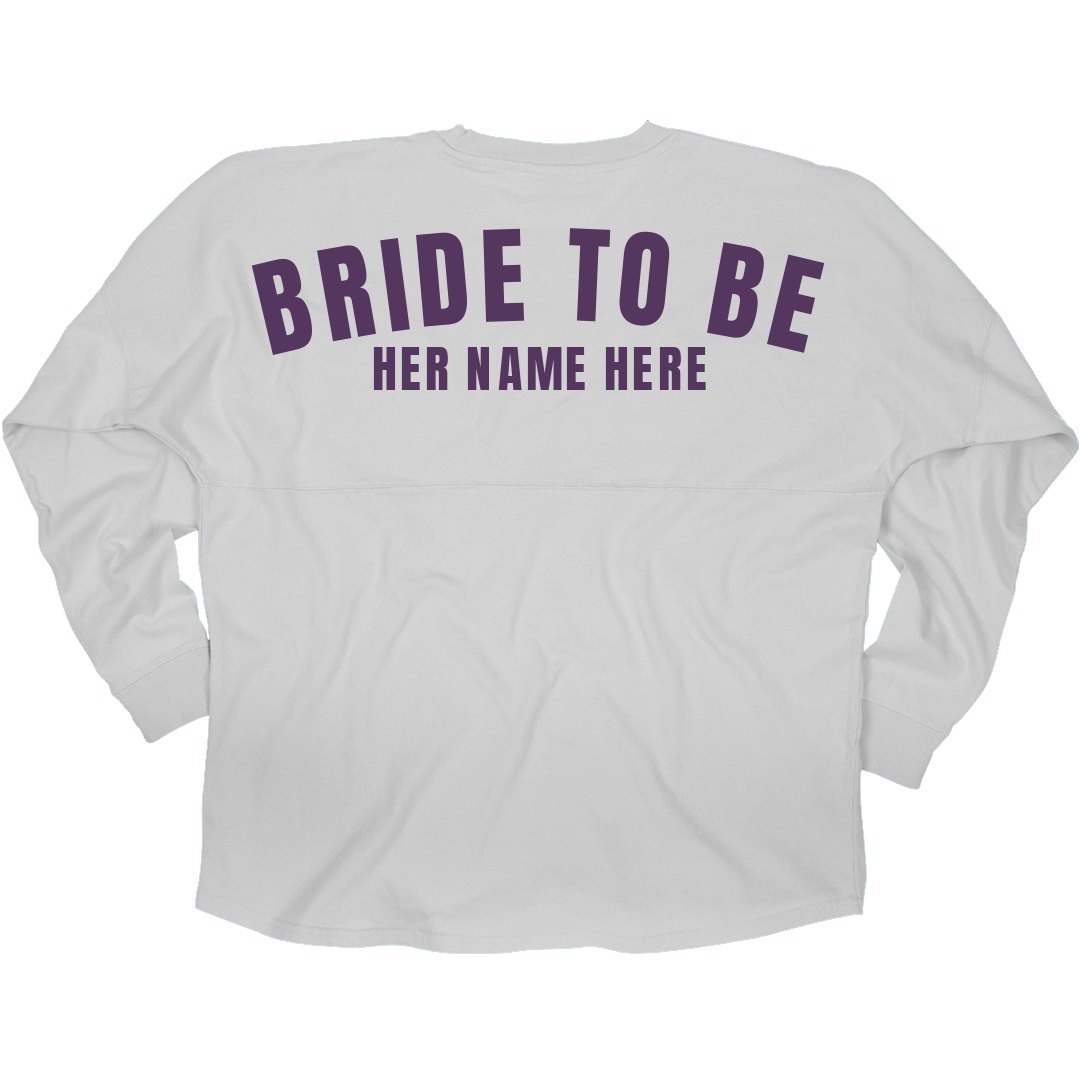 Get the bride to be a gift that she will love! Customize this cute billboard jersey long sleeve shirt and add her name to it in huge text across the shoulders. She can wear it while she plans her wedding or at her bachelorette party.