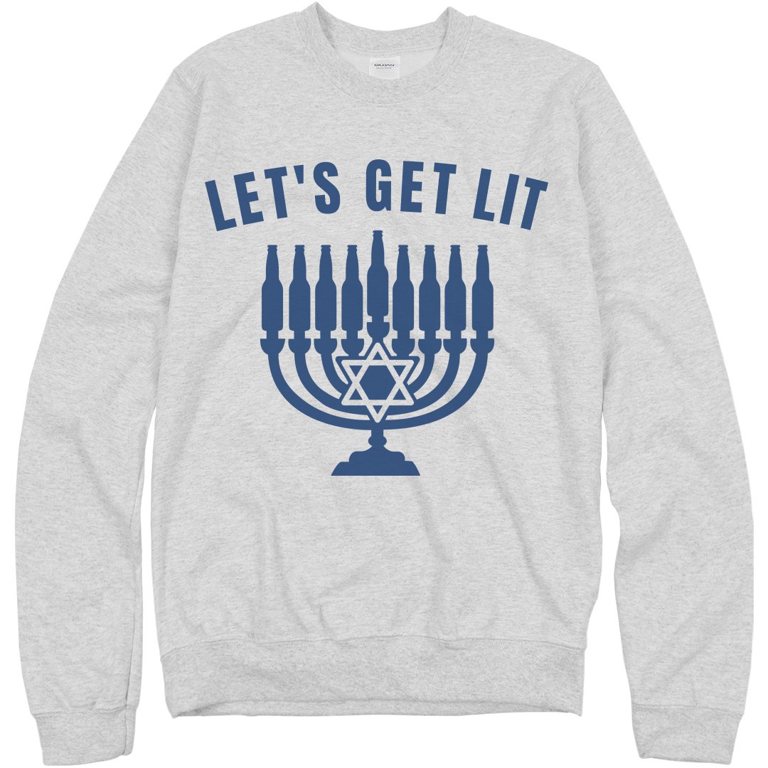 Will you be celebrating the Jewish Holiday this year? Make sure you're ready for your Hanukkah parties with this funny beer bottle menorah sweatshirt! Let's get lit!