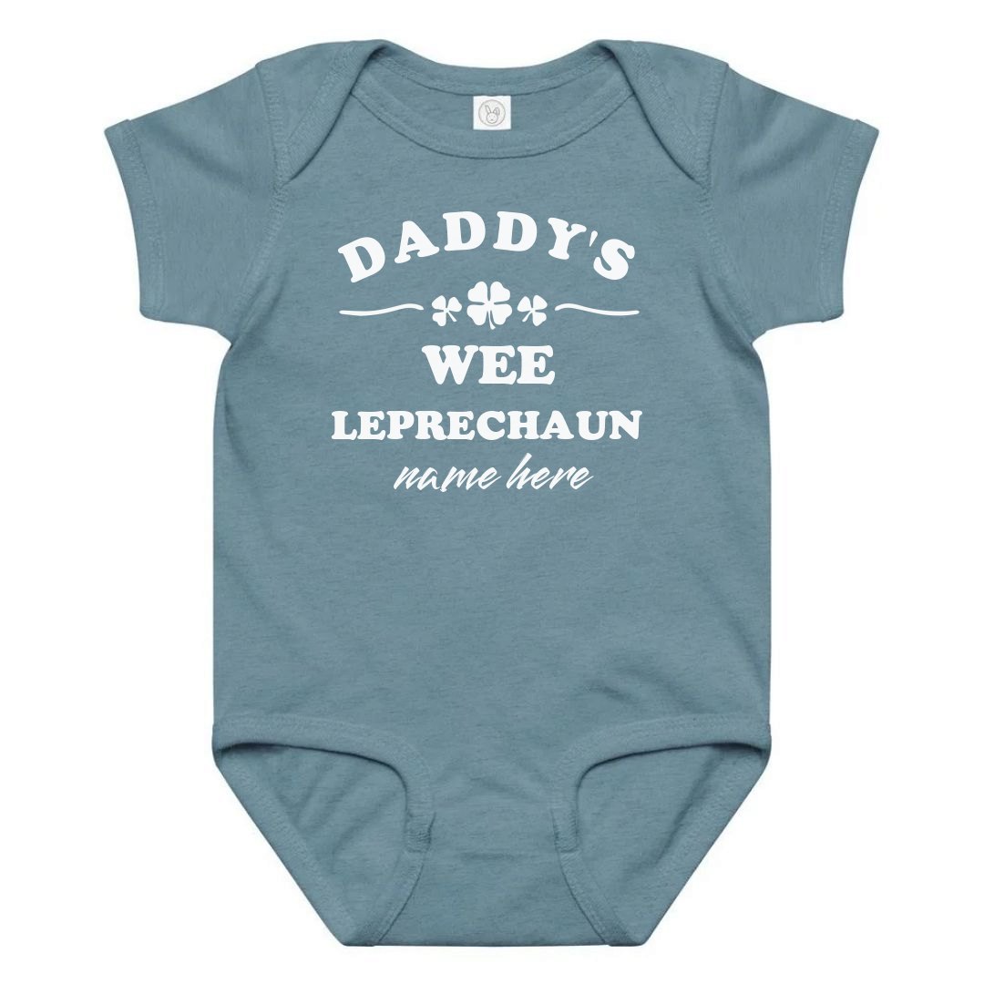 Outfit your little leprechaun in this cute shamrock onesie for St. Patrick's Day. Everyone's a wee bit Irish when they wear green! Daddy's wee leprechaun is going to look adorable in this outfit.