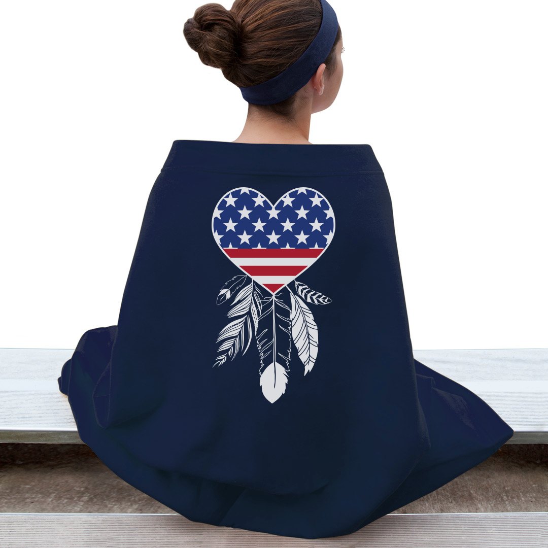 Red white and blue heart with American flag and white feathers for the flag stripes creating a cool patriotic dreamcatcher. Perfect patriotic design to show your American pride this summer or during patriotic holidays and events like Independence Day on the 4th of July, Flag Day, Memorial Day, or Veteran's Day.