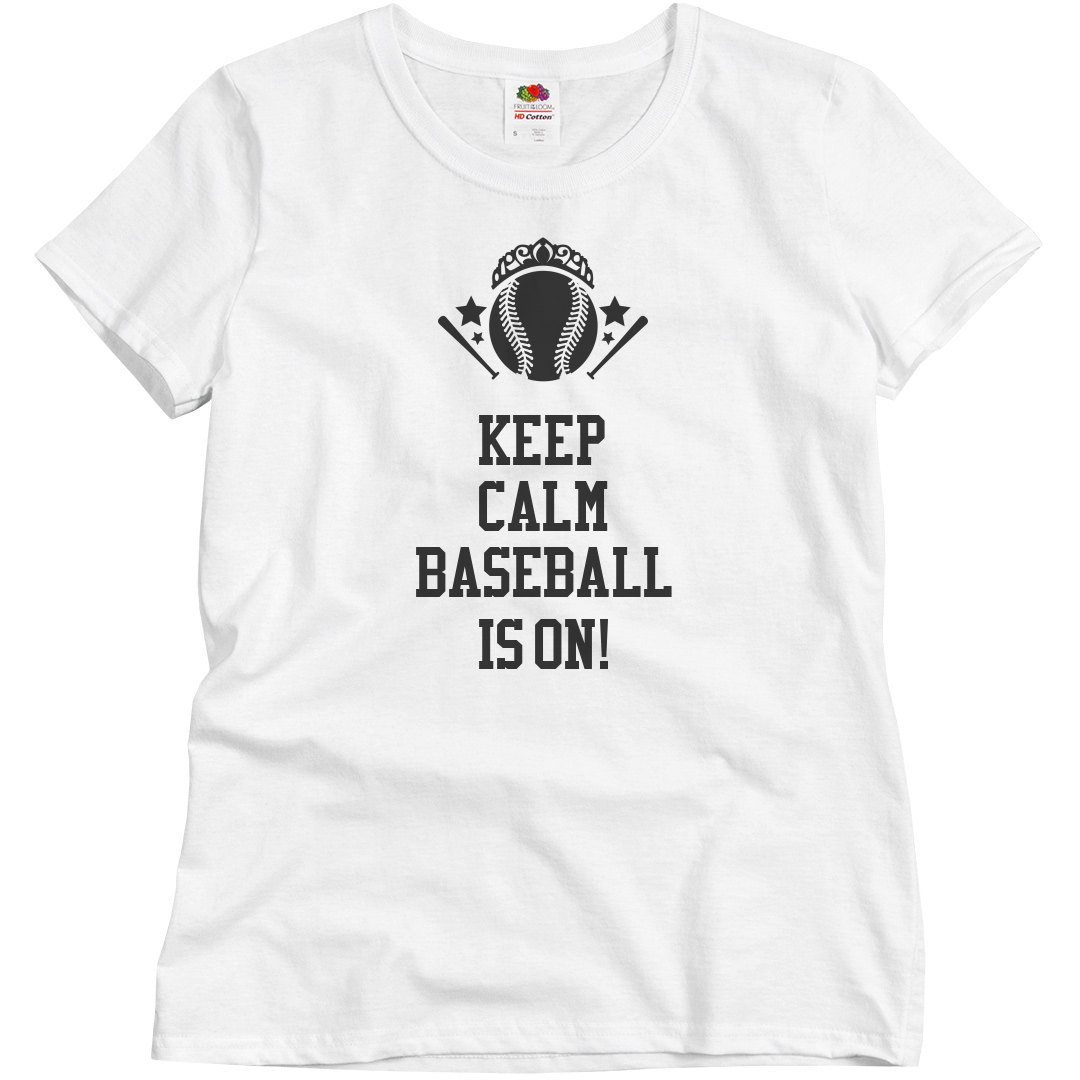 Show your baseball spirit with our cute sports inspired Keep Calm Baseball Is On!with a princess crown, bats, stars all surrounding a baseball unisex T-shirt perfect for the baseball fan.