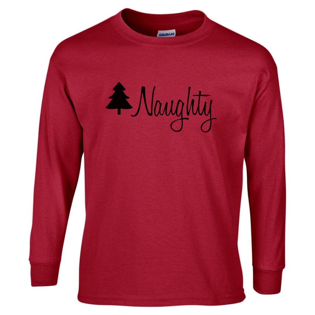 Matching pajamas are the way to go this Christmas! These awesome pajama tops are perfect for the Christmas season. Who is naught and who is nice in your relationship? You decide with these naughty and nice matching long sleeve tees.