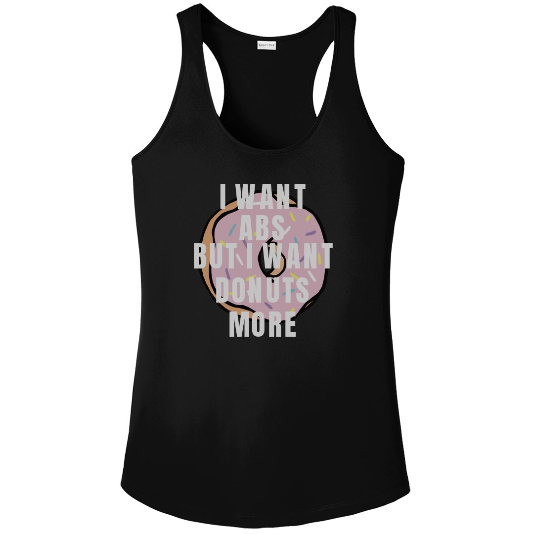 This tank top lets everyone know how much you wish you had abs...after a donut of course. Customize this workout top with some fun custom text or add your own favorite food to the design.