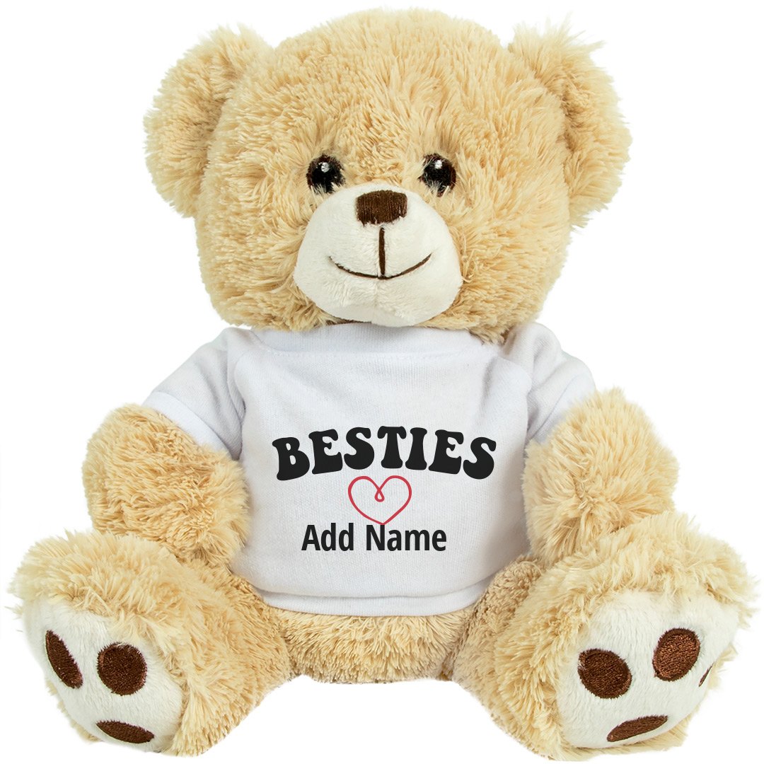 BEST SELLER! I mean, who could say "No" to that face? This cute and customizable medium Teddy Bear sits at an average of 10 inches tall and has soft, embroidered eyes and nose and is great for giving little bear hugs. Perfect for customizing and sending to military loves, kids at camp, and others away from home.