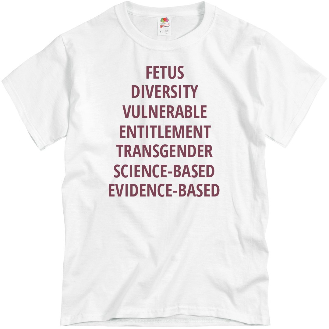 You only have one word to these 7 banned words by this administration: Resist! Show that you will not remain silent with this shirt as you stand with the others in this fight.