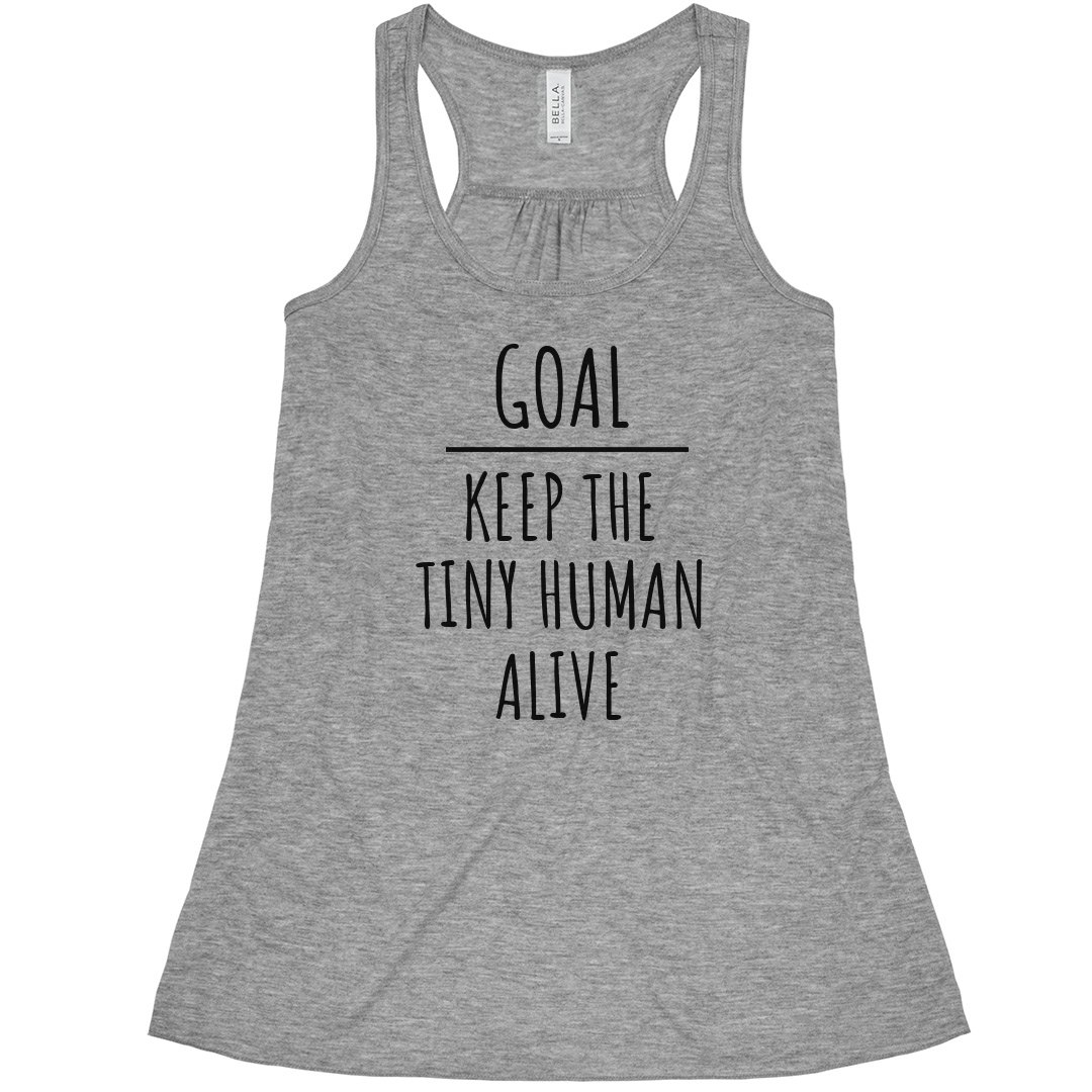 As a mom, you have one thing on your plate this year: keeping the tiny human alive! Snag this funny and flowy tank top to let everyone know you've got your hands full! Check out the matching 'Tiny Human' baby piece for your little one.