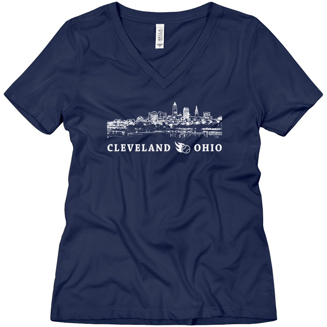 Show off your Cleveland pride and love for Cleveland baseball with this original shirt from JKS Designs. It features a stylized skyline image of Cleveland, Ohio taken from Edgewater Park. T-shirt colors coordinate with our team colors so you can wear this unique design around town, to a game, or to just show off your pride of being a Clevelander.