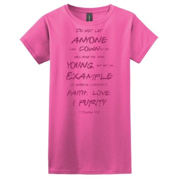 Email Design to Friends (1 Timothy Be a Young Example Dark Pink Words T Shirt)