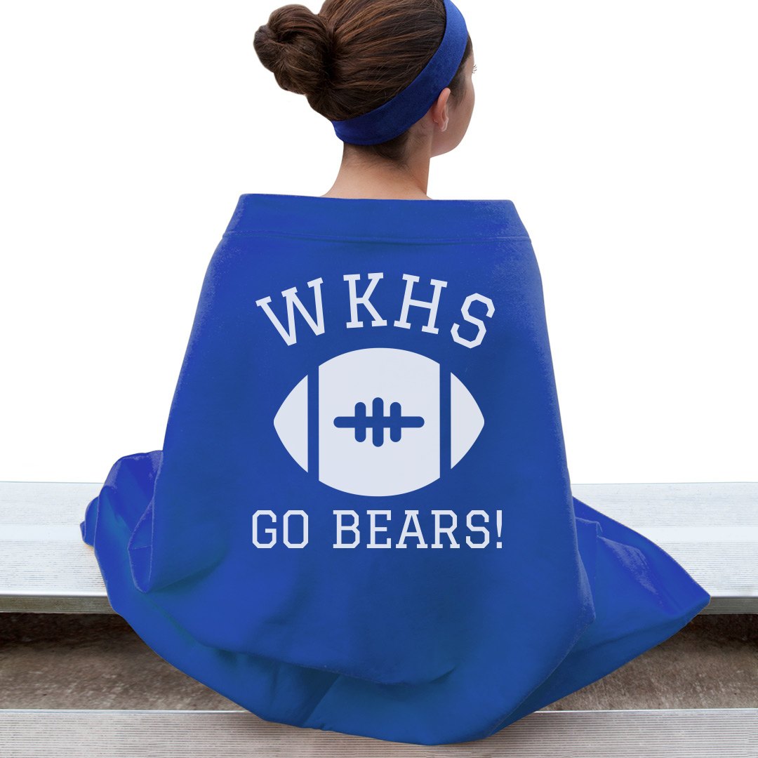 Football Friday Night can be chilly in the fall. Make sure you're ready with this custom blanket and support your local team. Don't forget to change the color of the blanket to match the home team!