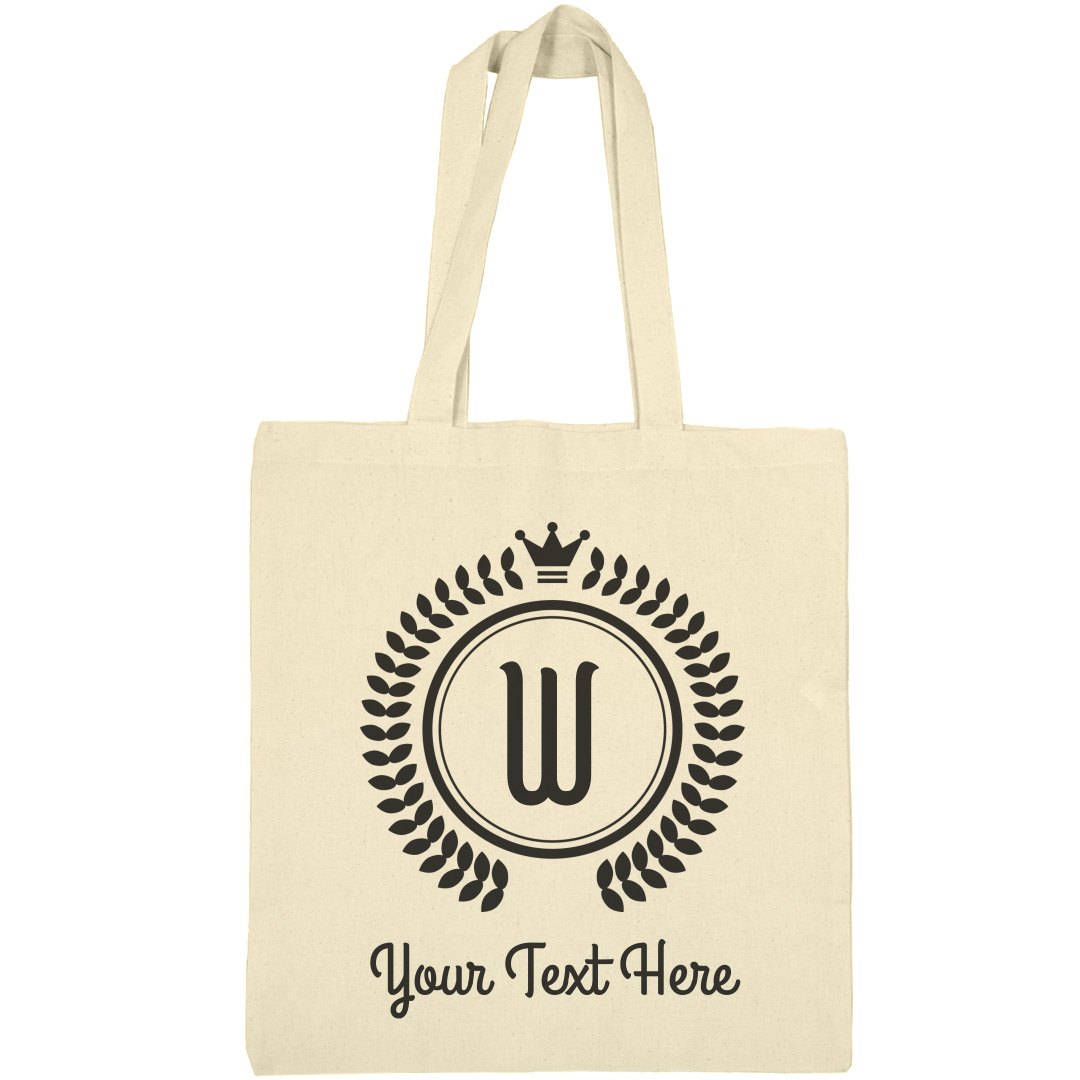 Personalize a monogram tote on Customized Girl. Our design center lets you easily swap out our default text for any custom message you want to have printed. Change the letter in the circle to match your name, then add any additional text underneath for a uniquely personal product.