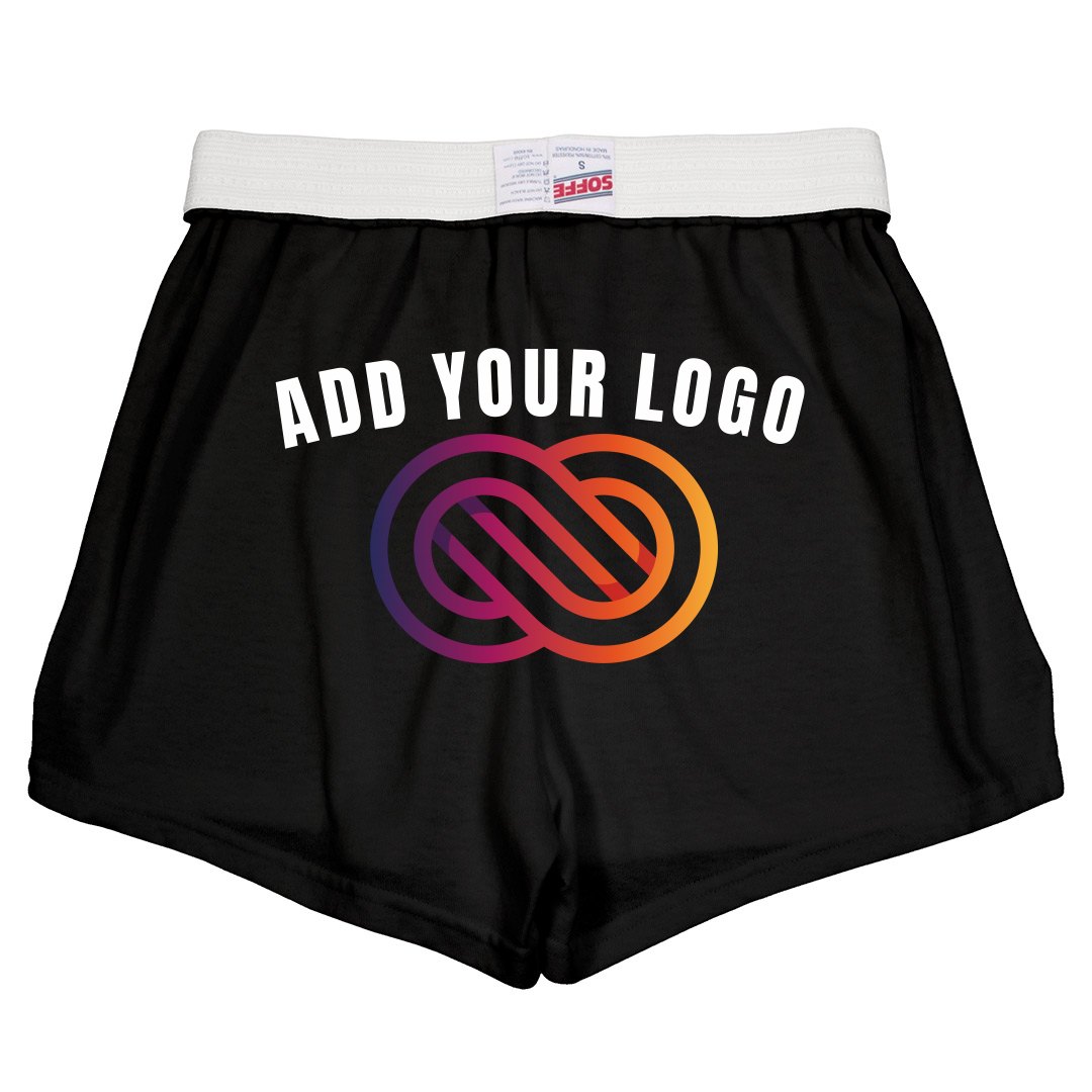 SOFFE! Jump up and give a cheer for customizable cheer shorts! These authentic Soffe shorts with the signature white waistband are comfortable and guaranteed to move with a cheerleader's every jump and bend.