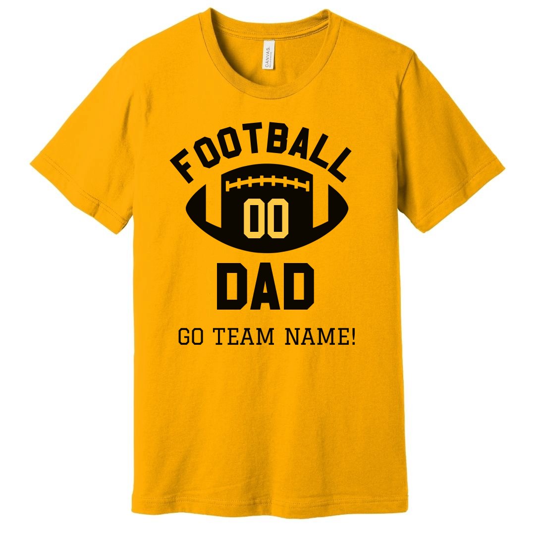 Hey football dad! Support your child in their athletic pursuits with customizable spirit wear and sports fan apparel! Personalize this design with a custom football team name and your son's football number, or create your own design with our Design Center graphics, text, and uploaded images!