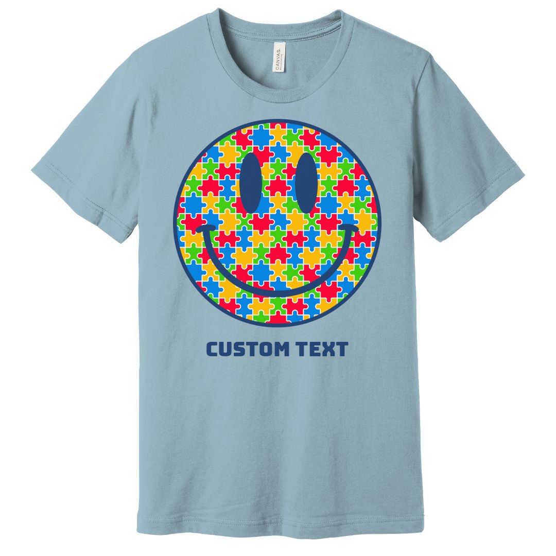 Raise Autism Awareness uniquely by wearing this customizeable puzzle smiley face shirt! Understanding the spectrum would be more easy if we all accept it. How cool is it to wear a shirt that looks good and at the same time do it for a cause.