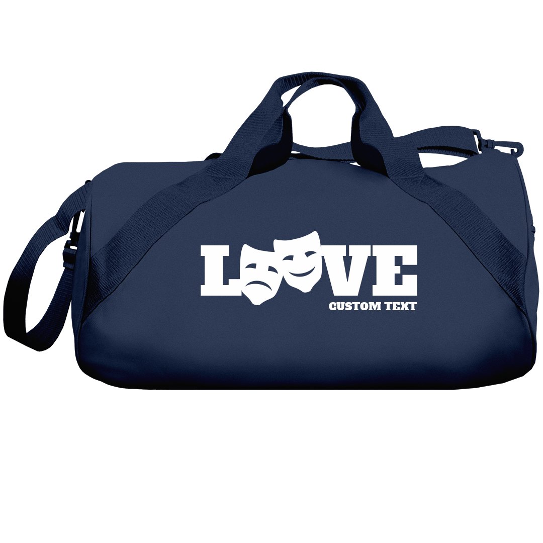 Customize this drama and theatre love duffel bag with your own text. Personalize it with your school, team, or name of your choice.