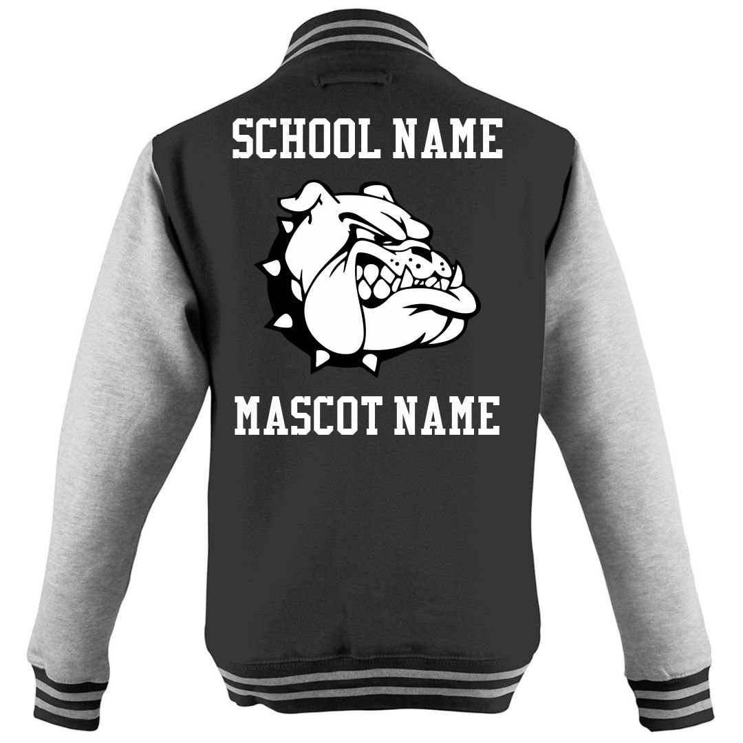 Upload your own logo, mascot, photo, or image to this trendy varsity sports jacket. Personalize the text and add art to make your own custom sports varsity jacket.