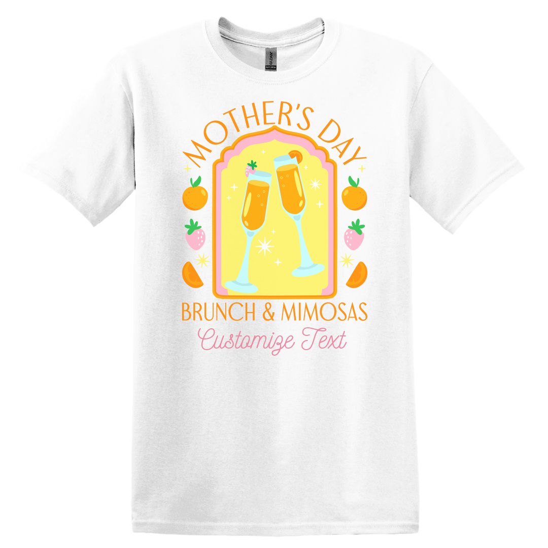 Toast to Mom in style with our retro Art Deco mimosa illustration, perfect for Mother's Day Mimosas and Brunch! Featuring a chic and elegant design reminiscent of the Roaring Twenties, this tee sets the stage for a glamorous celebration with Mom. Customize it with the location and/or the date of the event for a personalized touch. Whether you're raising a glass to her accomplishments or treating her to a decadent brunch affair, this tee is the perfect attire for commemorating her special day. Add a touch of vintage flair to your Mother's Day festivities and make memories that sparkle with this sophisticated apparel!