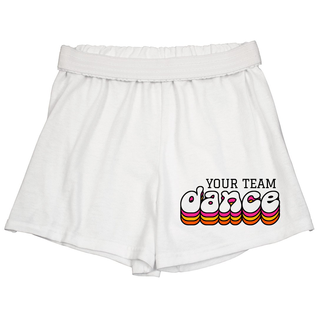SOFFE! Jump up and give a cheer for customizable cheer shorts! These authentic Soffe shorts with the signature white waistband are comfortable and guaranteed to move with a cheerleader's every jump and bend.