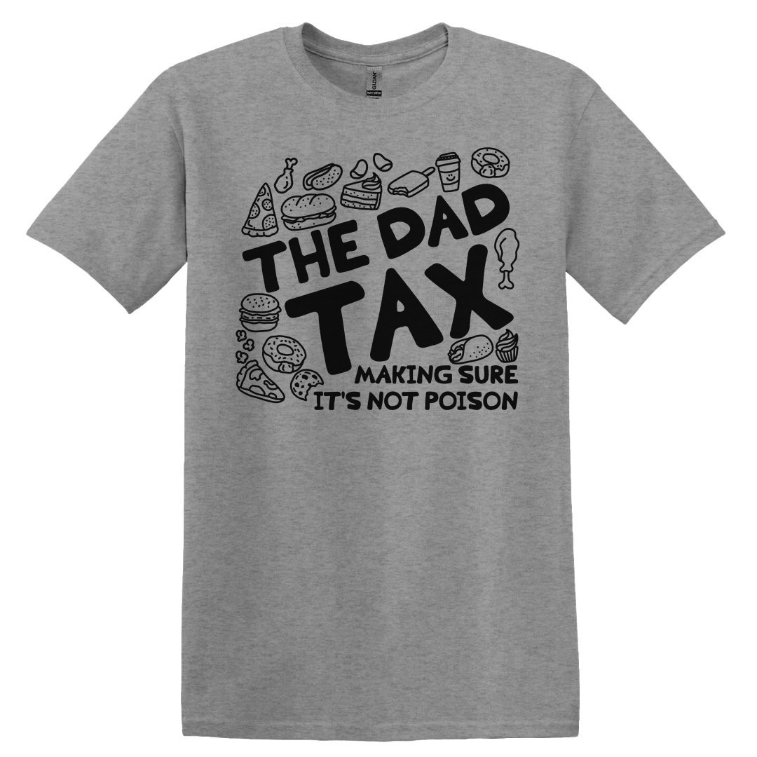 Introducing 'The Dad Tax'—ensuring snacks are safe for consumption since forever. This design features playful doodles of tasty treats, reminding everyone who the real quality control expert is in the house! Perfect for the silly dads in your life or as a fun Father's Day gift.