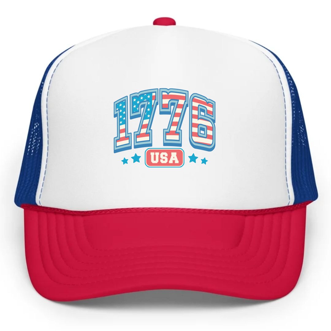 Celebrate America's founding year with our "1776" design, featuring the American flag and stars in a retro red, white, and blue overlay. This patriotic design is perfect for those who want to show their pride for the USA in a stylish and trendy way. Whether you're commemorating Independence Day or just want to display your American spirit, this design is sure to make a statement.