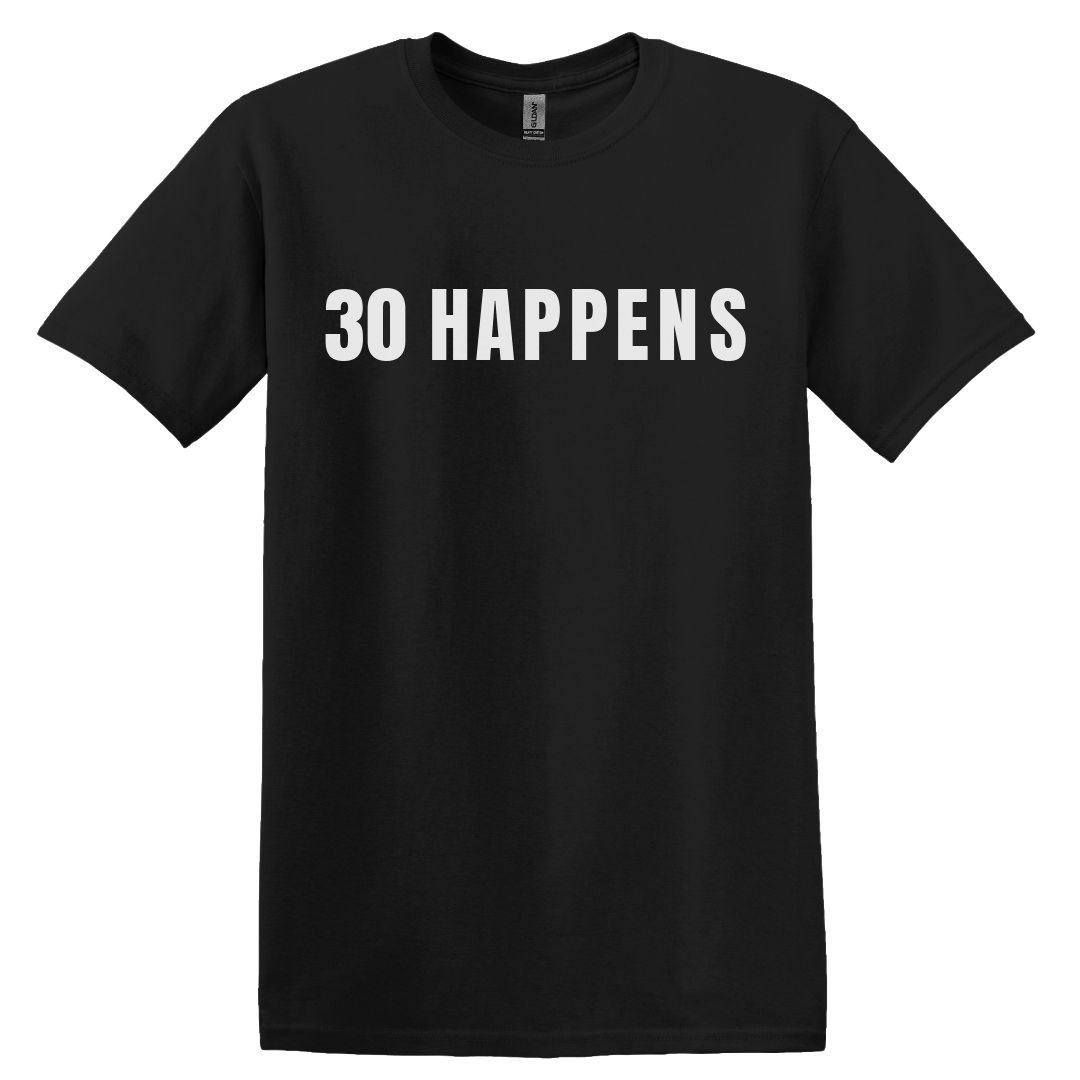 Yes, it's true... 30 happens, so does 40 and 50. Do you have a friend turning 30? This shirt is perfect for him! This would be a great women's tee also. 30 happens!